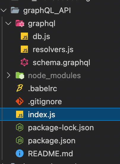 백엔드가 기존에 API를 만들기 위해서는 장고나 express를 사용하며 데이터를 받아오기까지 각종 프레임워크를 사용하고 작업시간이 오래걸린다고 하는데 그에 비해 GraphQL은 정말 간단명료하게 만들 수 있다. 바로 이 4개의 파일들만 있으면 가능하다.